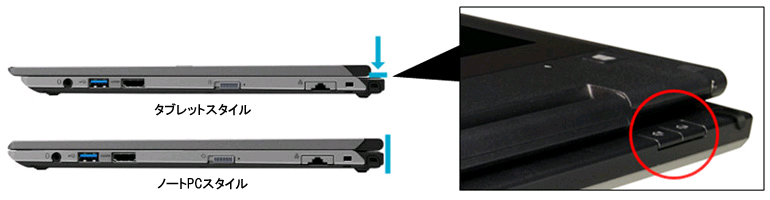 指紋センサーはディスプレイの枠に配置しているので、タブレットスタイル時にもスムーズに使用できます。 -