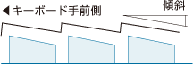 キーが列ごとに階段形状の段差を持つことでミスタッチを軽減。