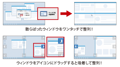 注:9分割は、自動整列の場合のみ可能です。ドラッグによる整列では、6分割まで可能です。