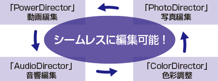 BCNランキングで国内シェアNo.1を誇る(注1)サイバーリンク社の包括的なビデオと写真の編集ツールは、さまざまな創作活動を行うプロフェッショナルのためのクリエイティブツールです。世界に評価される動画編集ソフト「PowerDirector」を筆頭に、写真編集・音声編集・色彩調整のソフトがシームレスに利用可能。より高度な編集作業が効率的に行え、クリエイティブの世界が広がります。