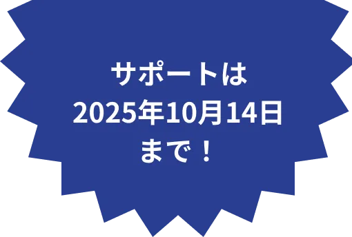 2025年10月14日にWindows 10 のサポート期間が終了しました。定期的に提供されている重要な更新を含むセキュリティ更新プログラムや有償サポートなど、マイクロソフト社が提供するすべてのサポートが受けられません。