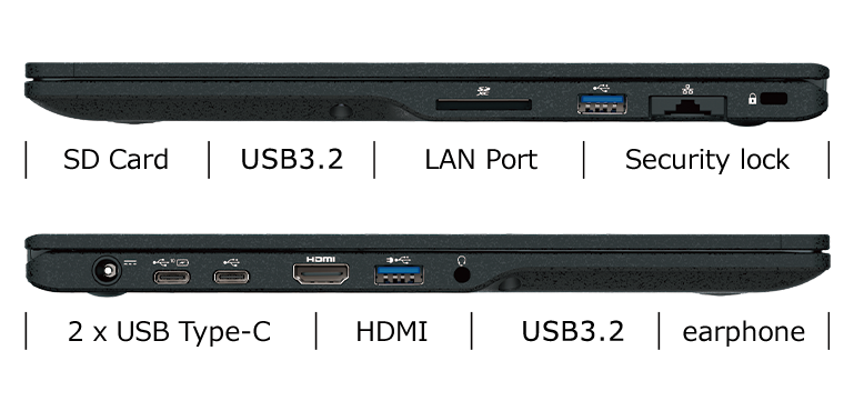 The thin and light notebook with its LAN port that folds out connects to a network with a conventional ethernet cable. You’re sure to appreciate it when you’re somewhere with no WiFi, like at a hotel during a business trip.