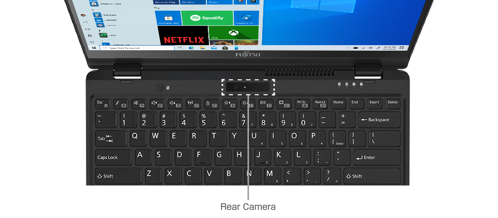 The PC is equipped with a full range of ports in a lightweight and compact body. There's no need for carrying conversion adapters. With two USB Type-C ports, you can connect to even more devices.