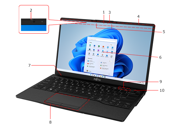 - 3. Webcam status LED