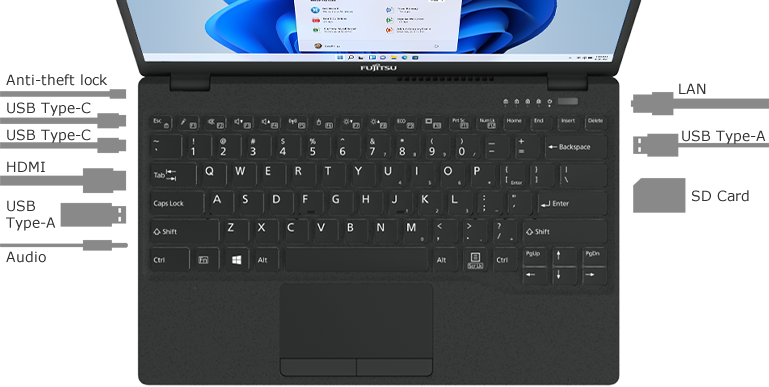 It is equipped with a full range of ports in a light and compact body. With two USB Type-C ports, you can connect to more devices.