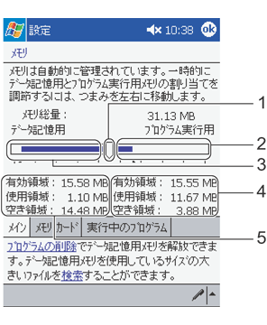 - つまみを左右にドラッグすると、データ記憶用とアプリケーション実行用のメモリの割り当てを調節できます。