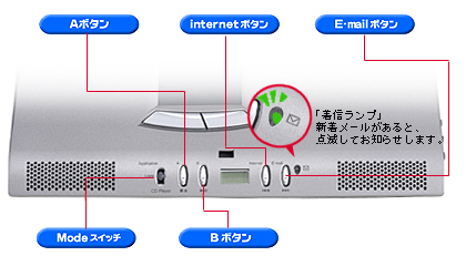 | E-mailボタンをワンタッチ。自動的にダイヤルアップ接続。