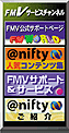 デスクトップ画面上に、富士通パソコン情報ページ「FM WORLD」や「@nifty」の人気コンテンツのご紹介、「FMVサポート&サービス」のご案内など、役立つ楽しい情報を満載したFMVサービスチャンネルを用意。 初めての方でもインターネットを存分に楽しめます。 |  |