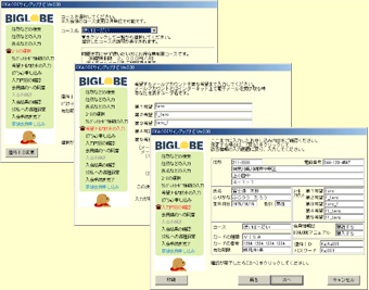 インターネット接続業者(プロバイダ)「BIGLOBE」に、入会するための手続きを行うアプリケーションです。画面の指示にしたがって、名前、住所、料金コース、支払い方法などの必要な情報を入力していくだけで、パソコンから簡単に入会できます。また、インターネット接続に必要なダイヤルアップの設定のほか、ブラウザやメールの設定を自動で行うことができます。