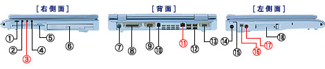 | インタフェース | 外部ディスプレイ(アナログRGB Mini D-SUB 15ピン)/拡張キーボードまたはマウス(PS/2タイプ Mini DIN 6ピン)/シリアル(RS-232C D-SUB 9ピン)/パラレル(セントロニクス準拠 ECP対応 D-SUB 25ピン)/マイクイン・ジャック(φ3.5mmモノラル・ミニジャック)/ラインイン・ジャック(φ3.5mmステレオ・ミニジャック)/ヘッドフォン・ジャック(φ3.5mmステレオ・ミニジャック)/光デジタルオーディオ出力(丸形[ミニプラグ])※ラインイン・ジャックと共用(*7)/IEEE1394(S400 4ピン)(*8)/ビデオ出力(S端子)/FAXモデム(モジュラジャック[RJ-11])/LAN(RJ-45)/USB(コネクタ4ピン×4)(*9) |