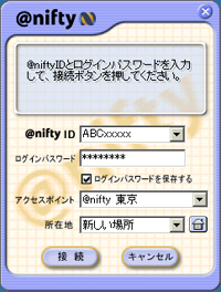 インターネットの設定や接続、切断などを簡単に行うアプリケーションです(@nifty(アット・ニフティ)をご利用の方のみ)。混雑度の低いアクセスポイントを選んでダイヤルするので、いつでも快適に接続できます。