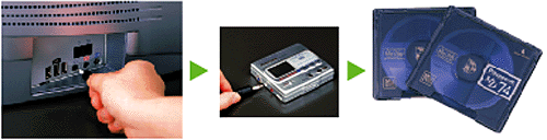 ※写真のポータブルMDレコーダーは、パナソニックのSJ-MR200(別売)です。