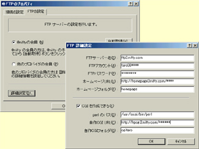 FTPサーバーにファイル転送するためのサーバー情報を設定