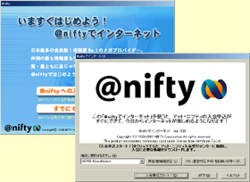 (モデム、所在地情報を設定し、@nifty受付センターへ接続)