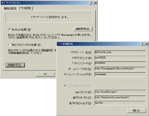 FTPサーバーにファイル転送するためのサーバー情報を設定