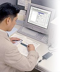 機動性が抜群のPCカード接続タイプ。ノートパソコンと一緒に持ち歩いて、新聞や雑誌など、街角で見つけた情報をスキャン、クルマや電車の中でもいただいた名刺をすぐスキャニング。外出先での情報収集に最適です。また、Windows(R)CE2.0搭載のハンドヘルドPCへの接続にも対応します。