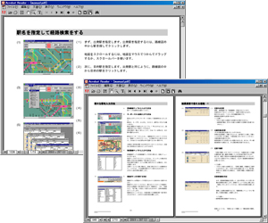 PDF(Portable Document Format)ファイルを表示、検索、印刷するためのアプリケーションです。最近では、PDFファイルで作成されたマニュアルも多く、Acrobat Reader 4.0を使ってパソコン上でマニュアルを見ることができます。