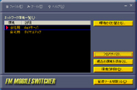 たとえば、1台のパソコンを、自宅ではダイヤルアップ接続、会社ではLAN接続する、というようなときに、FMモバイルスイッチャーで簡単に環境を切り替えられます。