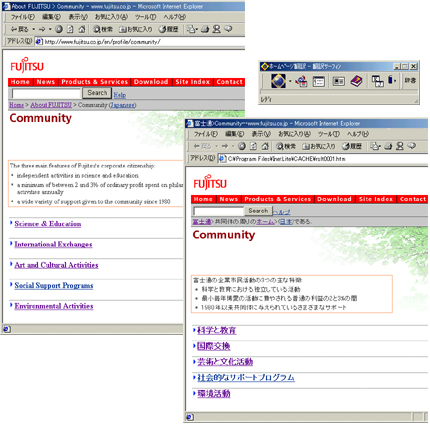 特長 英語のホームページを日本語に翻訳して表示するアプリケーションです。英語のページと同じレイアウトで日本語のページを表示します。読みたい部分や、ページの特定の個所だけを翻訳することもできます。