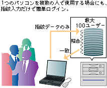 指紋データだけで、ユーザーの特定を行い該当するユーザーのID/パスワードを返します。これにより指一本でログイン可能なシステムの構築が可能です。