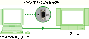 DVD映像などをダイレクトに出力できるビデオ出力(D2映像)端子を装備。テレビに出力すれば、好きな映画も、高画質かつ迫力あふれる大画面で楽しめます。※12 |