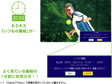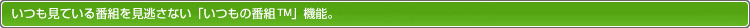 視聴履歴(曜日/時間帯/チャンネル)を蓄積して、傾向を分析。いつもみている番組を見逃さないようおにお手伝いします。※1 |