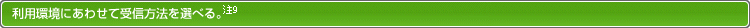 地上デジタル放送の携帯・移動体向けサービス「ワンセグ」に対応。注5外出先はもちろん、移動中でもクリアな映像でテレビを視聴できます。注6 注5 LOOX T70S/Vでご利用になるには、標準添付のワンセグチューナーカードを接続する必要があります。また、ワンセグチューナーカードはLOOX T70S/V専用品です。その他の機種ではご利用になれません。 |