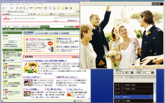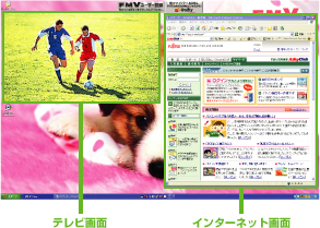 「ウィンドウ表示」に対応し、マウス操作でウィンドウの大きさや配置を自由に変更可能。インターネットやメールをしながら、テレビを楽しむことができます。※2 ※2 インターネット画面に表示される内容によっては、テレビの映像がスムーズに表示されない場合があります。また、動画を再生・編集するソフトウェアとの併用はできません。 *TXシリーズでは、サポートページ(http://azby.fmworld.net/support/)から対応プログラムをダウンロードしてインストールする必要があります。(2006年9月上旬提供予定) |