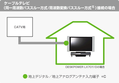 ●ケーブルテレビご利用の場合は、必ず事前にご契約のケーブルテレビ会社に同一周波数パススルー方式*Dであることをご確認ください。