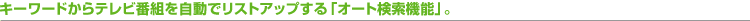 リモコンで入力した注2キーワードを含む番組を自動で検索してリストアップします。録画したい番組だけを簡単に探して録画することができます。