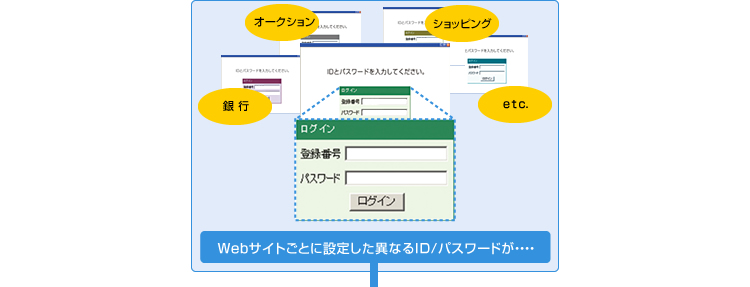 指紋センサーで異なる複数のIDとパスワードを一括管理できます。