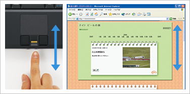 指先をスライスさせると画面スクロールができるので、ホームページの閲覧などが快適に行えます。 |