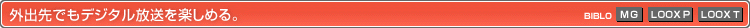 地上デジタル放送の携帯・移動体向けサービス「ワンセグ」に対応。注1外出先はもちろん、移動中でもクリアな映像でテレビを視聴・録画できます。注2、3 注1 LOOX T70S/Vでご利用になるには、標準添付のワンセグチューナーカードを接続する必要があります。また、ワンセグチューナーカードはLOOX T70S/V専用品です。その他の機種ではご利用になれません。 |