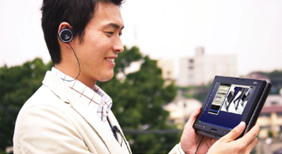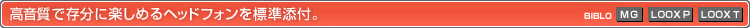 装着しやすく、耳にフィットするイヤハンガー式のオーディオテクニカ社製ヘッドホンを採用。臨場感あるサウンドをスタイリッシュに楽しめます。 ※ MGシリーズ、LOOX Pシリーズのヘッドホンは黒色になります。 |