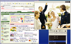 デスクトップ上に、テレビ視聴の子画面を表示できるので、インターネットやメールなど他の作業をしながらテレビを楽しめます。 |