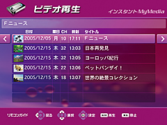 録画番組を見る。インスタントMyMediaで録画したテレビ番組はもちろん、Windows® の起動中に録画したテレビ番組も見られます。さらに電子番組表「G-GUIDE®」を使って録画したテレビ番組なら、番組名が表示されるので、見たい番組をすぐに探して再生できます。 前回見た続きから番組を再生できるレジューム再生。途中で再生を停止した番組は、次に再生すると続きから視聴できます。 |