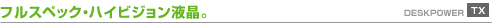 DESKPOWER:LX、CE BIBLO:NX 液晶表面から、細かな凹凸をなくすことで、内光の拡散を抑えます。明るくあざやかな映像を実現し、美しい映像を表現します。20.1型ワイド液晶ならデジタル放送の視聴に最適なハイビジョン対応(1680x1050ドット)です。