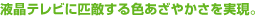「あざやかウィンドウ」の高画質化機能により、海や空の青、草木の緑や肌色を色鮮やかに、また、コントラストのきいたメリハリのある映像で表示し、デジタル放送を色鮮やかでエッジの効いた美しい映像で楽しむことができます。さらに、LXシリーズでは、「Dixelエンジンボード」による「ガンマ補正」で自然に近い色での表示を実現しています。