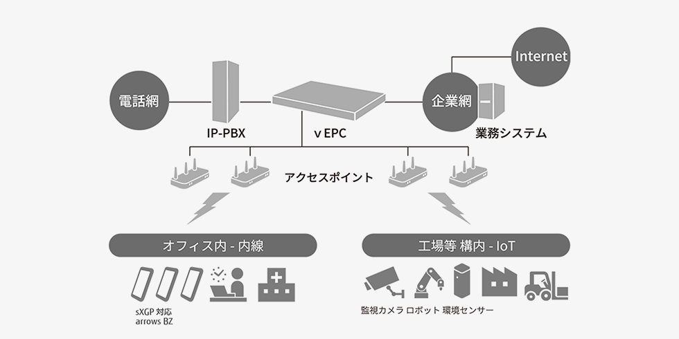 自社内のみで利用可能なLTE網(プライベートLTE)を実現できる規格「sXGP」に対応。