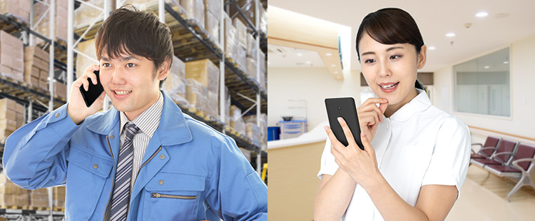 一般的なスマートフォンは、Wi-Fiに接続すると電波が弱まってもなるべくWi-Fiに接続しつづけようとする性質がありますが、職場内を移動しながら使われる内線利用では通話が途切れてしまいます。そこで、arrows BZはWi-FiでVoIP通話をしていても途切れにくいWi-Fiハンドオーバーに対応。通話中に移動しても、アクセスポイントが自動的に切り替わるので、倉庫や病院などの広い場所でも途切れる心配がありません。