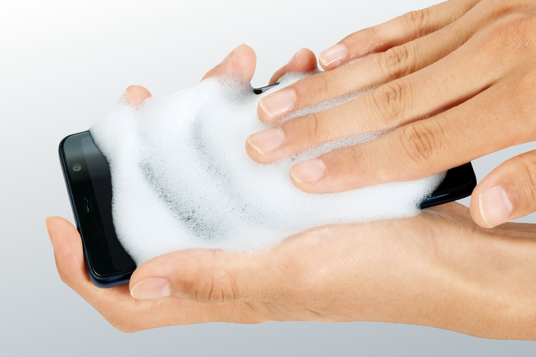 泡タイプのハンドソープや泡立てた液体食器用洗剤による洗浄が可能です。作業現場での汗やほこり汚れなども、キレイに洗うことができます。