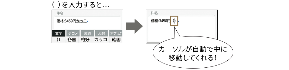 ( )を打つと自動的にカーソルが中に移動する。