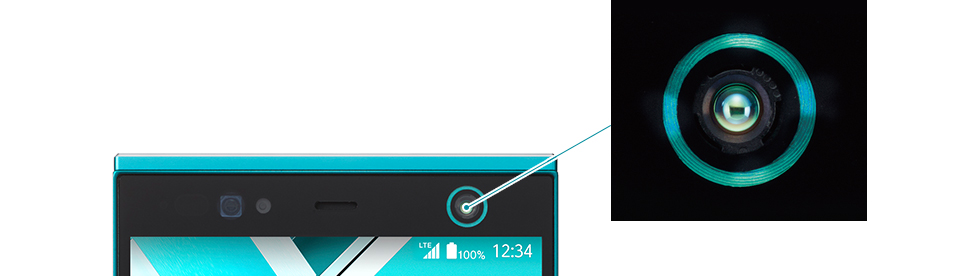 虹彩を読み取る赤外線カメラの色「Iris Green」を虹彩認証のシンボルとしてカメラ周りのリングにあしらいました。