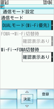 を押し、通信モードを「DUALモード(FOMA優先)」または「DUALモード(Wi-Fi優先)」を選択してから、