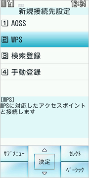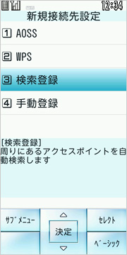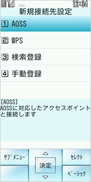 [新規接続先設定]を押し、登録方法を選択します。(待受画面からの場合は ![]()
