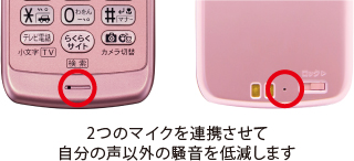2つのマイクを連携させて自分の声以外の騒音を低減します
