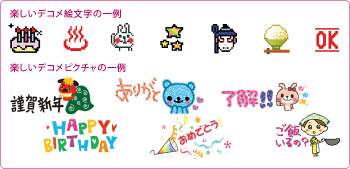 絵文字がコミカルに動くデコメ絵文字が440種類に増えました。デコメピクチャも充実しているから、自分の気持ちに合った楽しいメールを作れます。