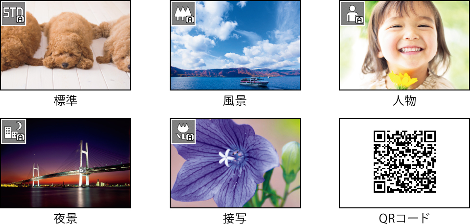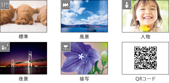 風景や人物・夜景・接写など、撮りたいシーンをカメラが自動で判別し、撮影モードを切り替えます。また、QRコードも自動で認識できます。