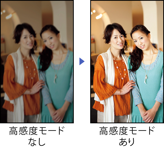 最大ISO12800注2相当高感度モードで、暗い場所でもブレを抑え、明るい写真を撮影できます。