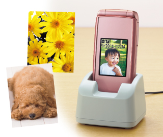 らくらくホン8を卓上ホルダに置くと撮影した写真がフォトフレームのようにスライドショー表示されます。送られてきたメールの添付画像を自動注3で表示させることもできます。